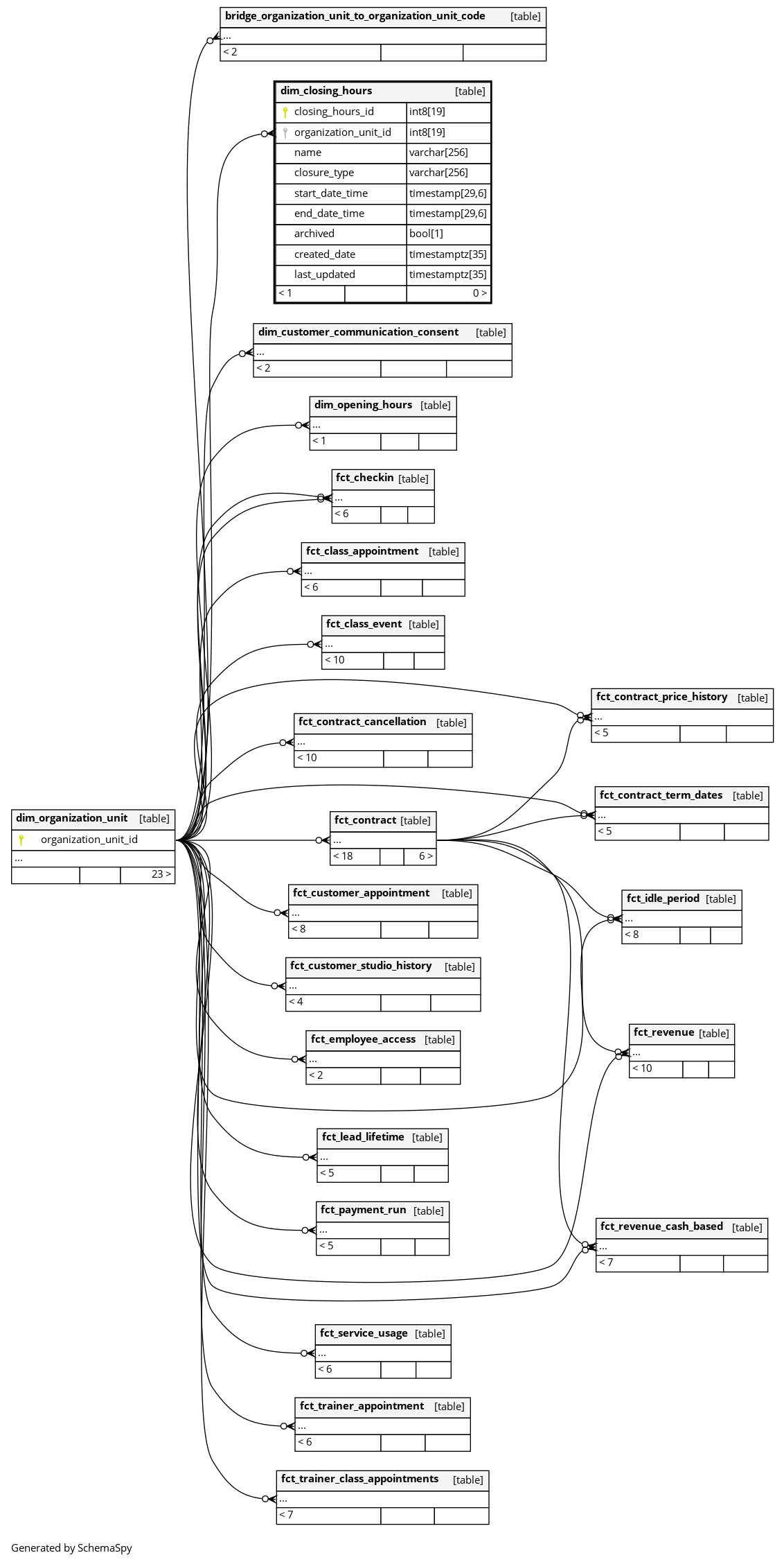 The organization unit (gym) that these closing hours apply to. |